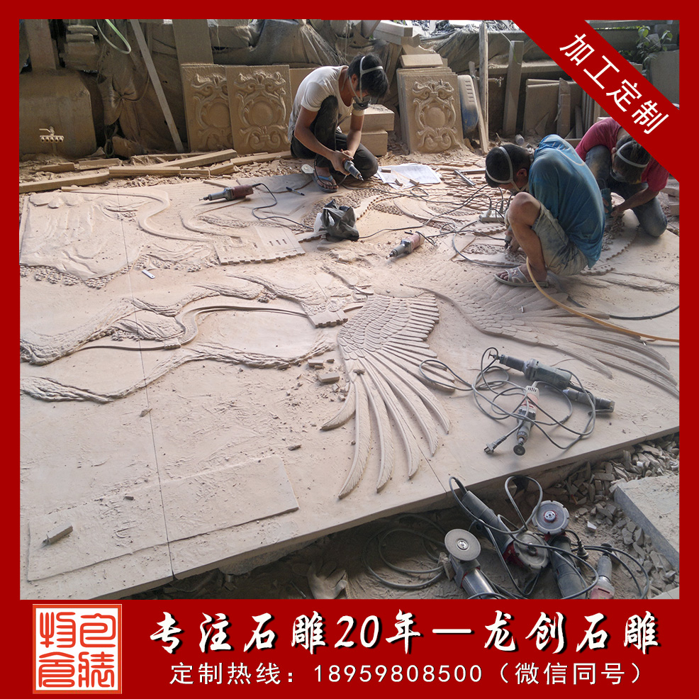 龍創石雕廠家的浮雕作品制作安裝過程圖: