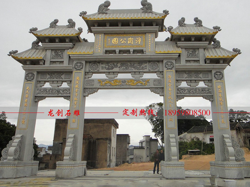 新農村石雕牌坊需要運用到傳統技藝—石雕,將寓意美好吉祥、幸福安康等各種事物與民間技藝融為一體,我們能夠從一些