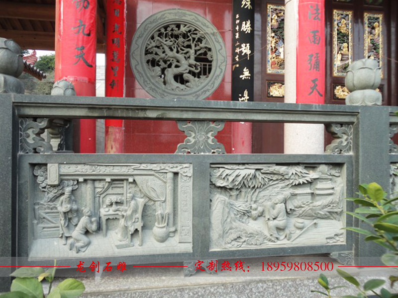 惠安石欄桿欄板上雕刻的圖案制作工藝主要為浮雕雕刻工藝,一般的欄板雕刻圖案有植物,如梅、蘭、竹、菊等,或者動物,如我們古代傳說的龍、鳳凰、麒麟或者飛鳥以及其他可愛的小動物。也有的一些欄桿欄板上會雕刻人物像或人物故事及中國神話傳說等,這是屬于比較復雜的欄板浮雕雕刻,簡單款式的欄板會雕刻花鳥圖案,簡單又有中國特色。