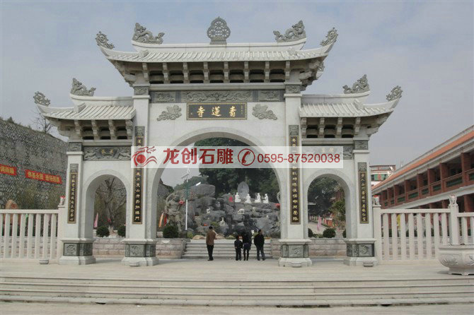 第二、石雕牌樓具有很高的藝術價值,在柱石和樓匾和斗拱的部分都可以雕刻事物,包括花鳥、走獸、龍鳳等等各種圖案,有的是采用浮雕的方式,有的是采用平雕的方式,整體看上去栩栩如生,非常的和諧壯觀。