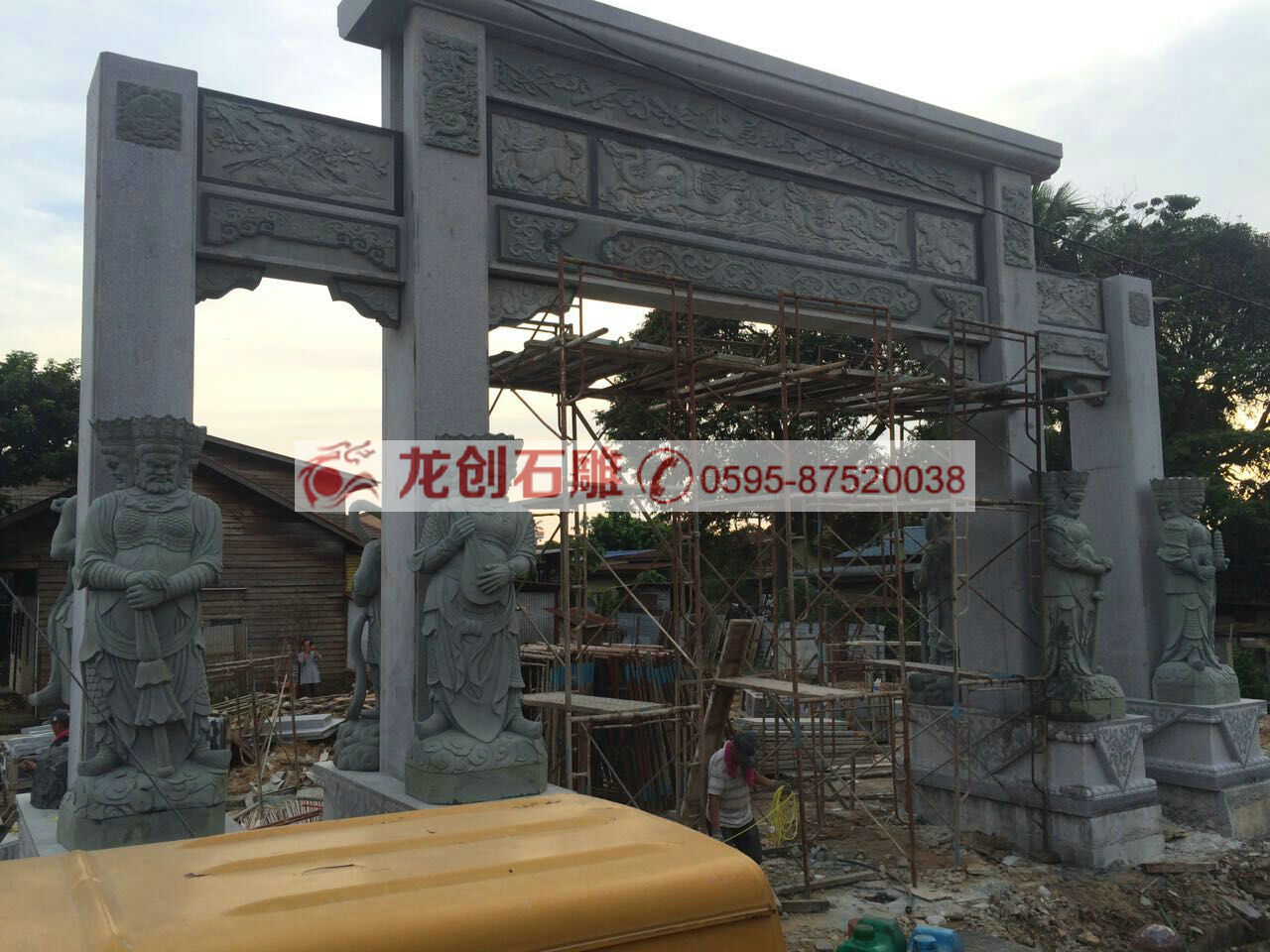 其實石雕牌坊與石雕牌樓是有顯著區別的,石雕牌坊沒有"樓"的構造,即沒有斗拱和屋頂,而石雕牌樓有屋頂,它有更大的烘托氣氛。但是由于石雕牌坊跟石雕牌樓都是我國古代用于表彰、紀念、裝飾、標識和導向的一種建筑物,而且石雕牌坊跟石雕牌樓又多建于宮苑、寺觀、陵墓、祠堂、衙署和街道路口等地方,再加上長期以來老百姓對"坊"、"樓"的概念不清,所以到最后石雕牌坊與石雕牌樓成為一個互通的稱謂了。
