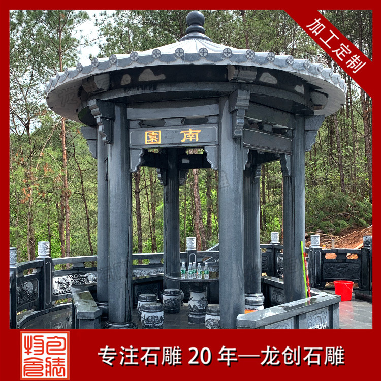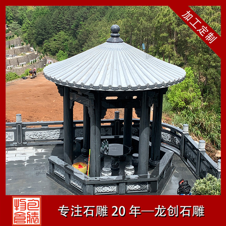 廣東陵園石雕墓套 石雕涼亭 石雕欄桿 石材浮雕工程完成