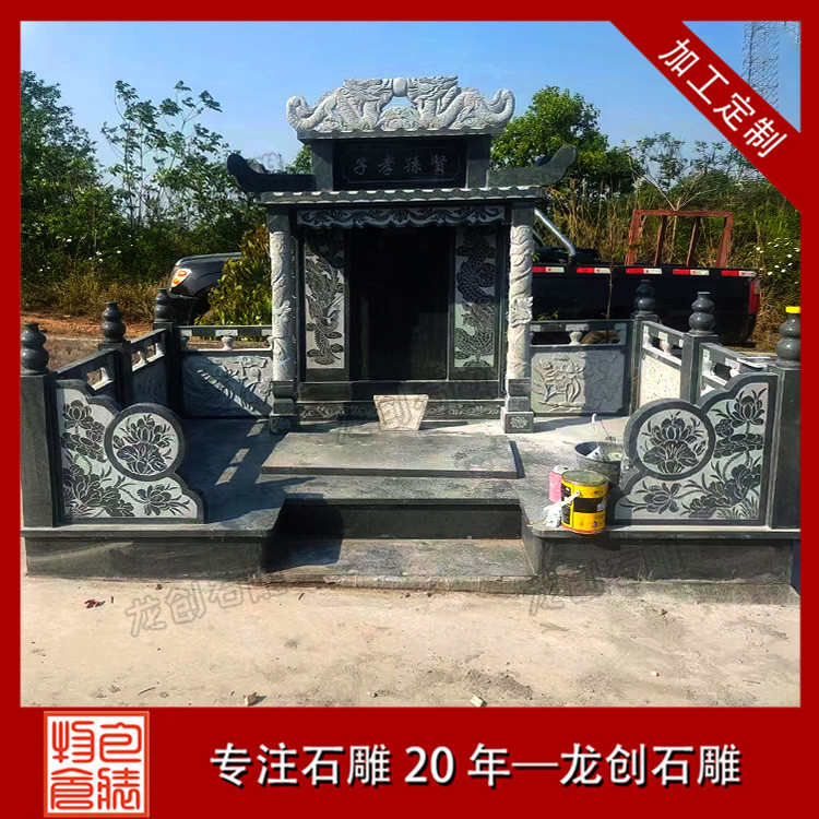 二、結構比較復雜,復式石雕墓碑采用復式的結構就表示墓碑會更加的接近傳統的豪華套墓,比如復式墓碑的圍欄就特別長,平臺也特別大,墓碑板和墓碑祭拜的地方也會相對大一點。在結構方面,復式墓碑需要對墓碑所處的地方全部的整平,石材和雕刻的部分也會相對多一些。