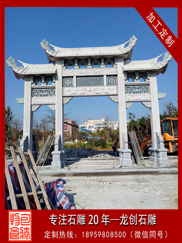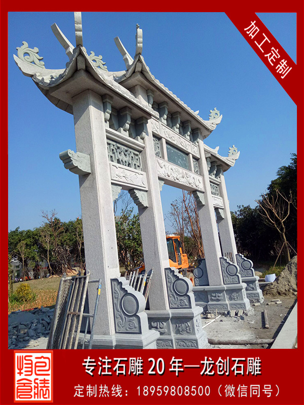 安裝地點:福建省泉州市晉江項目名稱:石雕牌坊材質:芝麻灰規格:三門石雕牌坊