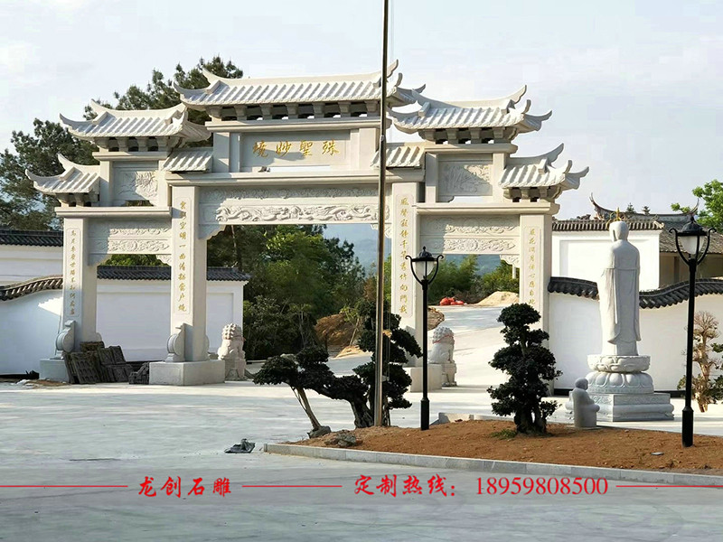 怎么才可以雕刻制作出好的石雕牌坊呢?那就是石雕山門牌坊廠家要有中國古代雕塑家的“工匠精神”追求追求卓越,崇尚質量,不論石牌坊價格高低,只要愿意制作了,就讓客戶滿意,讓他們提到龍創石雕,就會想到巧奪天工,這就是無形資產,專注于石牌坊制作,追求美觀,再小的行業,也會受到尊敬。石雕牌坊是自己的獨特的歷史文化,以及石牌坊散發出來的氣韻和精神,也成為這個地區的標志性建筑-石頭大門。