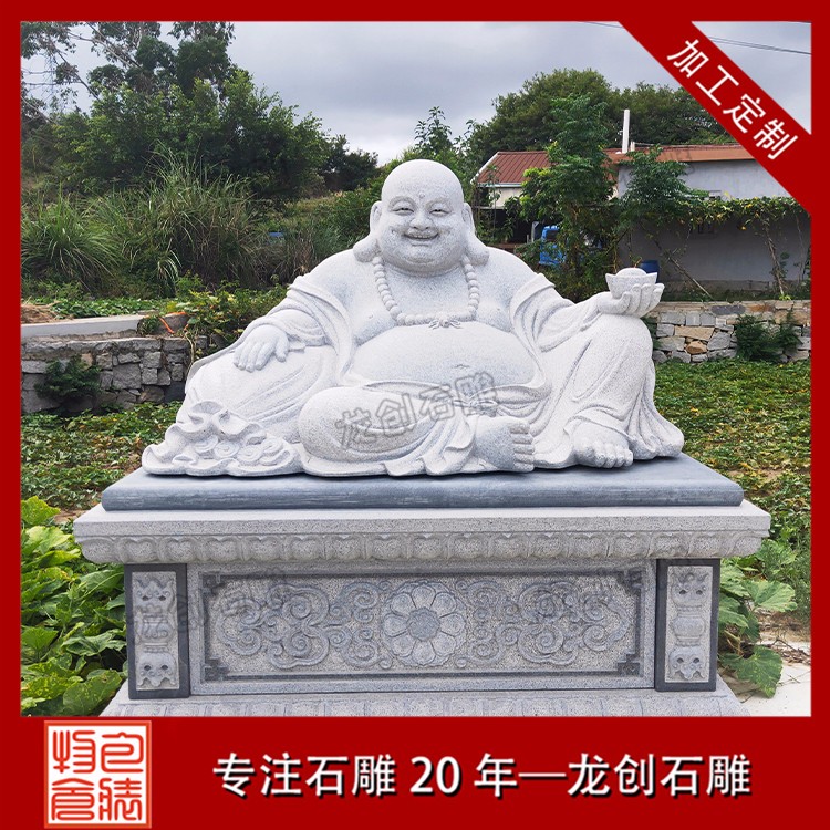 現在人們說到石雕彌勒佛佛像,印象深刻的就是他那張充滿笑容的臉,而這樣的彌勒佛我們稱之為笑口常開彌勒佛,而這種形態的石雕彌勒佛雕像從漢朝進入中國以來就這樣固定化了,人們用一位胖胖的中年人來寓意彌勒佛,一來是這樣的偉家見能得到人們的喜愛,二來也是因為未來佛的作用就是讓世界充滿歡笑吧,三來也是教導人們凡事都應該用笑去面對未來。