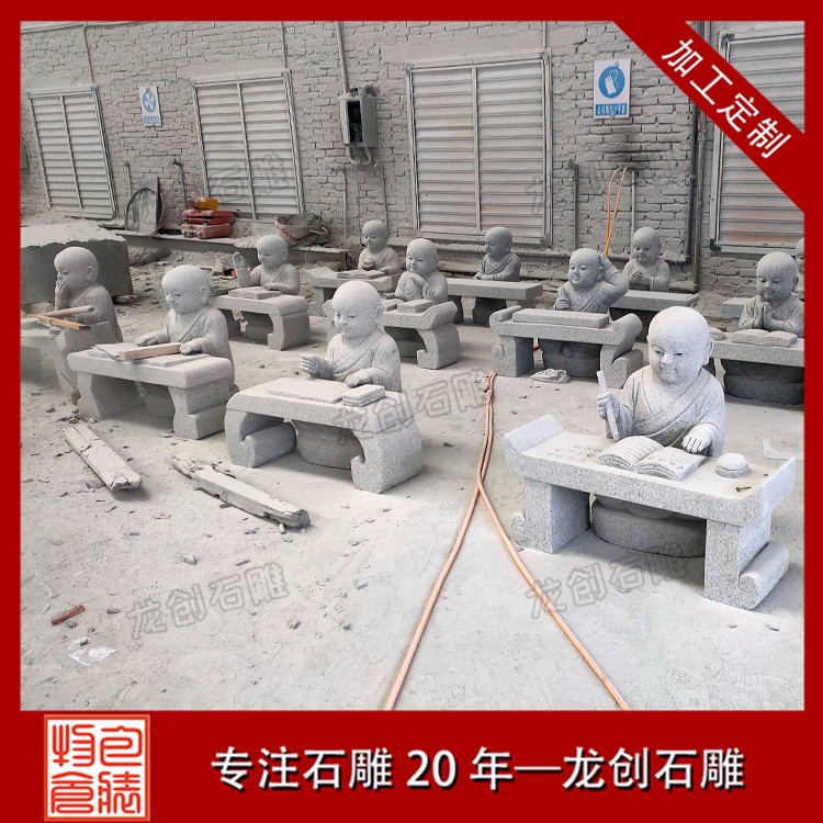花崗巖石雕禪意小和尚圖片大全主要分為掃地小和尚,晨練小和尚,吹笛小和尚,打盹小和尚,偷懶小和尚等。正在打坐的石雕小和尚,眼睛微閉,正打著盹,慵懶可愛,充滿童趣。在景區,文化廣場,校園等地擺放,給人們帶來歡樂,同時又不失為一道風景線。