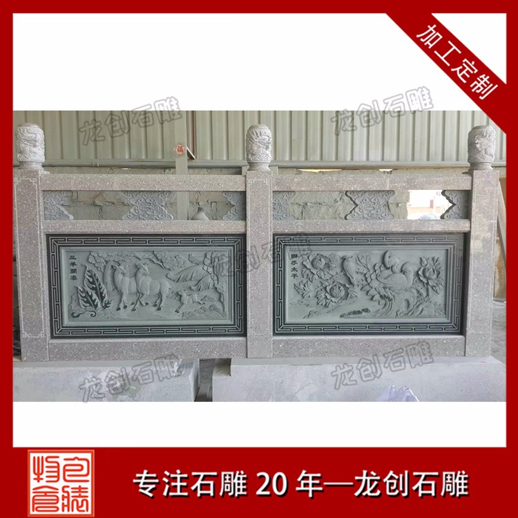 石材浮雕是一種在天然石材上表現浮雕技法的工藝品,在人們的生活中隨處可見。如別墅墻浮雕、寺廟浮雕、石材浮雕欄桿等。今天我們要了解的是石材浮雕欄桿制作及雕刻圖案,現在石欄桿和浮雕的結合使安裝區域多了一道風景線。