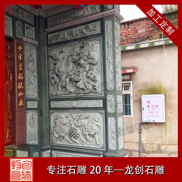 石材浮雕加工是一種悠久的工藝,利用浮雕的雕刻手法在石材表面雕刻出精致而又立體的圖案。石材浮雕屬于石雕工藝當中的一種,安裝在寺廟、祠堂或者宗祠、祖厝之類的地方的浮雕,圖案五花八門,但都有著其不同的寓意。一般祠堂浮雕有外墻墻體的浮雕,也有室內的浮雕,大多數浮雕圖案會以一些花鳥動物為主。