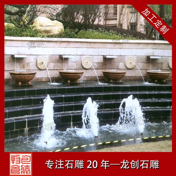 石雕流水噴泉石雕普通噴泉本是一類,都是把靜態流水變為動態水,使水也有了靈魂,又輔之以各種燈光效果,使水體具有豐富多彩的形態,可以緩沖、軟化城市中“凝固的建筑物”和硬質的地面,以增加城市環境的生機,有益與身心健康并能滿足視覺藝術的需要。