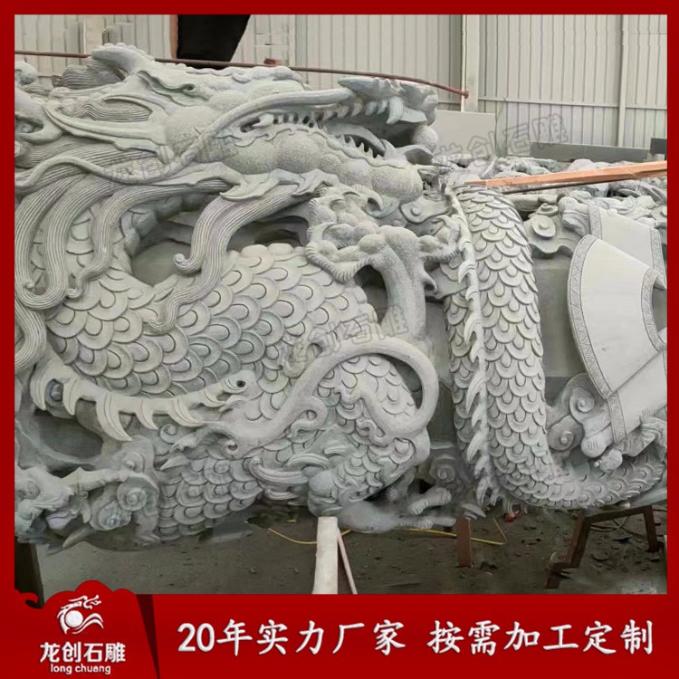石雕龍柱又叫石雕龍抱柱、盤龍柱、滾龍柱、蟠龍柱,指在石頭上雕刻龍紋的具有指示作用的柱子。龍柱全身雕刻龍紋,一般柱子上下雕刻兩條龍,龍浮雕一般雕刻深度在3-5cm,也有雕刻7-10cm的,深度雕刻的越深龍紋越明顯,龍的神圣形象也就越突出,整個柱子也就越具有莊嚴神圣感。