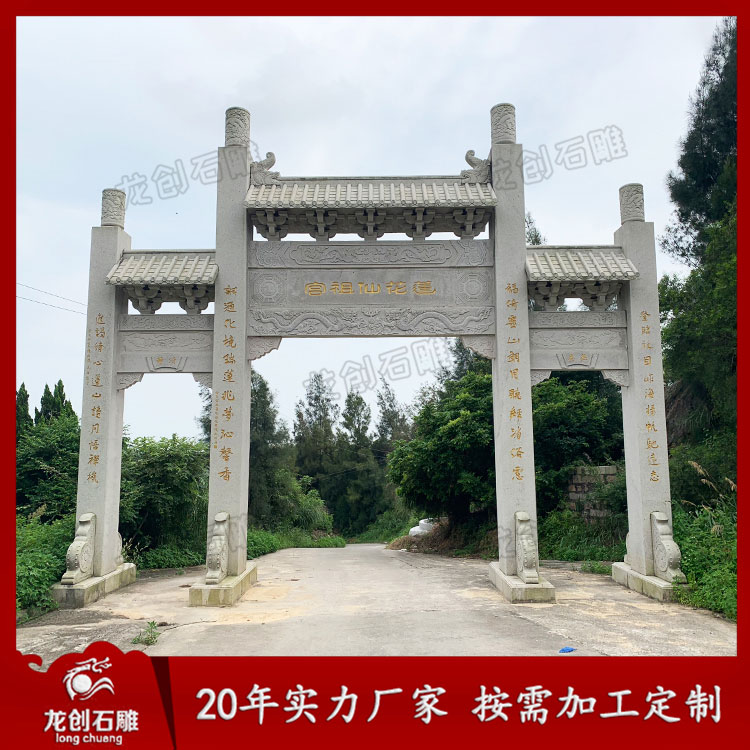 石雕牌坊作為中國傳統的建筑,其擁有更多自己的風格與特色,成為外國學者們研究中國建筑文化的主要途徑和方式。傳統石雕牌坊設計形式多樣,傳承到如今,牌坊更多是發揮其標志性作用,在新農村建設和寺院建設中普遍應用。惠安石雕牌坊廠家介紹應該如何預算不同樣式石雕牌坊價格