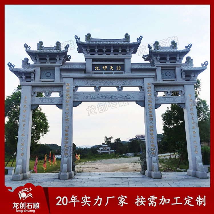 我們惠安龍創石雕廠,是一家專業的石牌坊廠家,對石雕牌坊雕刻制作,有著20年豐富的經驗,特別是青石和花崗巖牌坊制作雕刻。我廠家的石雕牌坊雕刻樣式,多種多樣,可以滿足客戶的各種要求。在石雕牌坊雕刻工藝上,以透雕、浮雕為主,圓雕整合趨勢明顯,刀法融精致于古樸大方,從而使得石雕牌坊,既有濃郁的傳統韻味,又富有現代化氣息。