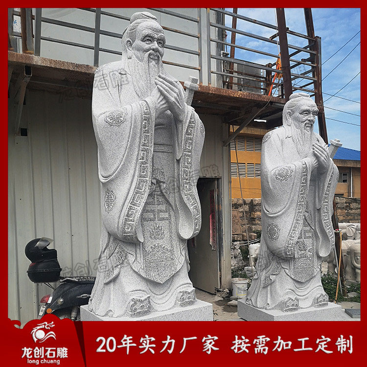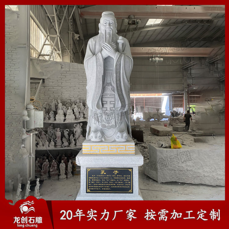 孔子老先生是儒家文化的創始人,對于子孫后代都產生了深遠的影響,現在很多學校和景區公園都會樹立一座孔子像,讓世人們能夠學習文化知識。孔子的形象是偉岸的,現在出現在我們眼睛中的孔子像都是雕刻師傅雕刻出來的,孔子石材雕刻需要選擇工藝好的廠家,漢白玉石雕孔子像廠家惠安龍創石雕,歡迎您來電咨詢。