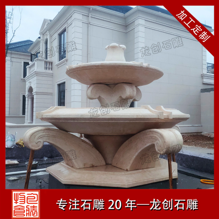 1、盡量將石雕噴泉擺放在沒有風的位置,尤其要避免有強風的位置,因為多層噴泉的連接主要是靠一根支柱,為了顯示其結構的美感,在設計時基本上沒有采用其他的加固點,所以大家在進行擺放的時候,盡量將其放在沒有風的場所,防止被吹倒,給石雕噴泉本身帶來傷害。