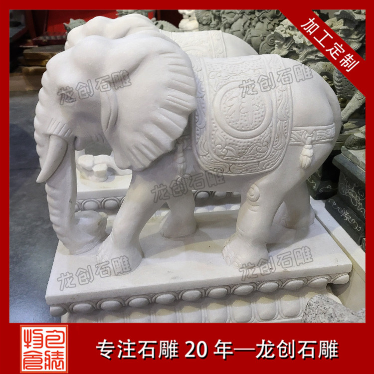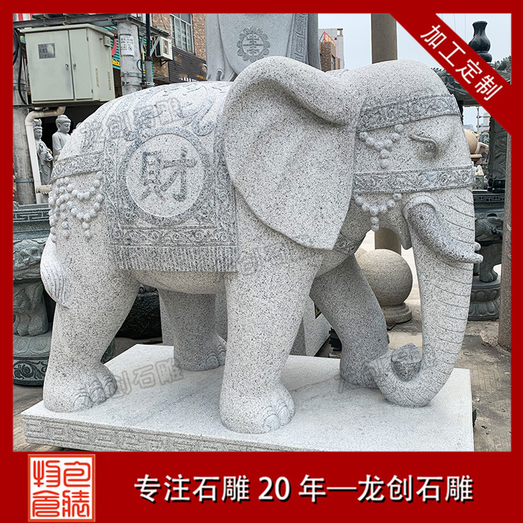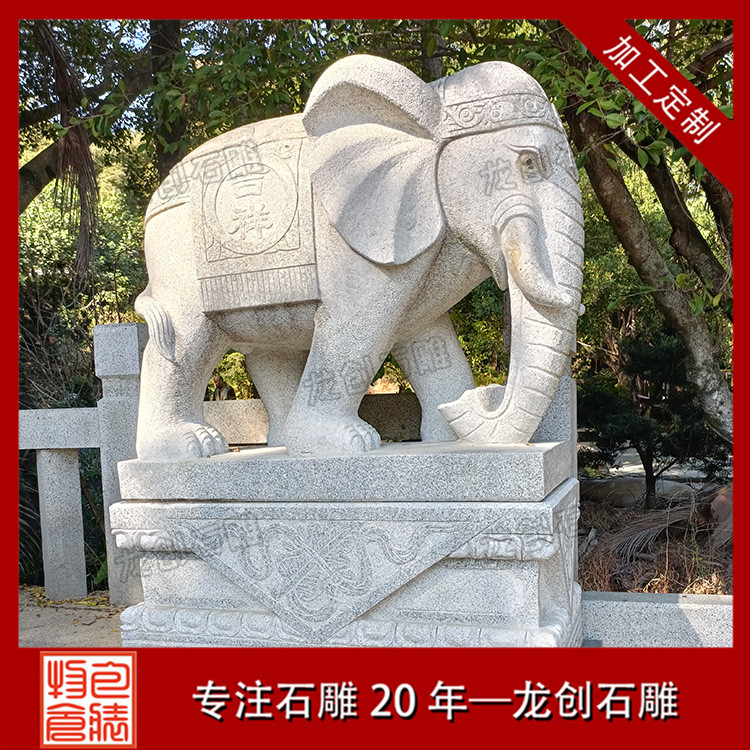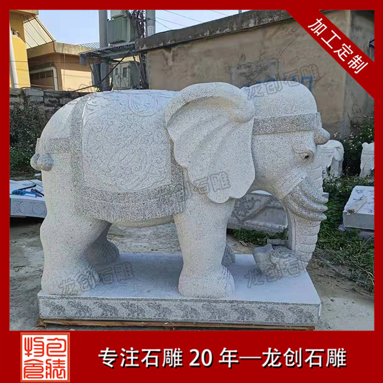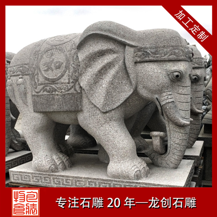 石雕大象雕塑是建筑物出入口常見的裝飾石雕擺件,常被擺放在景區公園、宮觀寺廟、單位企業、酒店賓館、個人住宅等場所,不同場所的石雕大象雕塑造型多樣,材質選擇也多樣。
