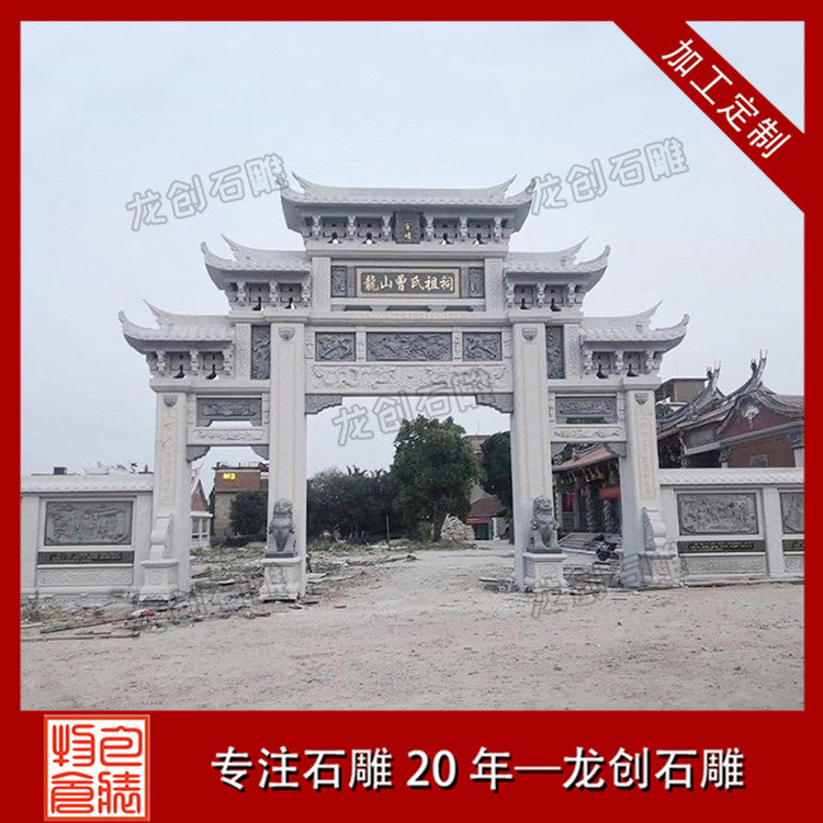 雕刻精美好看的中式景觀村口石牌樓,作為鄉村傳統文化中重要的組成部分,具有鮮明的地域性和文化性,對形成村莊格局和豐富鄉村空間形態,都產生了非常重要的影響。新村石牌坊、村口石牌樓是農村社會傳統文化的物質載體,記錄了農村地區的重要事件,同時也反映了新時期農民的思想道德觀念,以及對美好生活的期盼,也代表著新農村新形象。