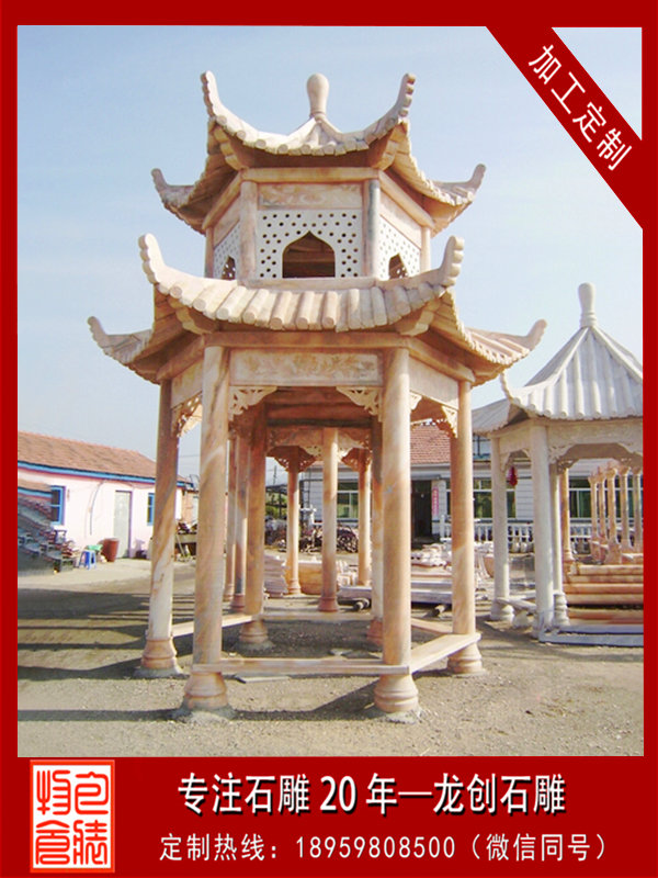 仿古涼亭一般在路邊、公園、山頂、小區內給人們乘涼觀賞美景,也可以裝飾空間,山前可以襯托山的雄偉,建于水榭則倒影成趣,在林間,若影若現,更添情趣,給人們以方便,是不可或缺的一建筑。龍創石雕在雕刻藝術方面有著獨特的風格,專業的技術團隊,為產品質量、雕刻藝術提供了保證。龍創石雕秉承著誠信對待每個顧客,按顧客的需求,以盡可能少的時間交出令顧客滿意的“答卷”。龍創石雕歡迎您的來訪、咨詢。