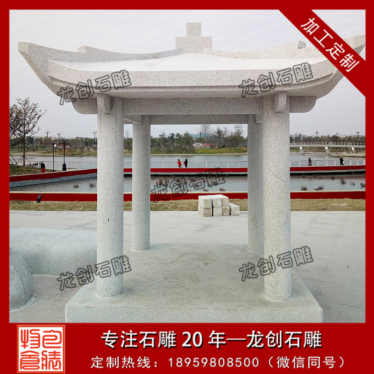 石雕亭子是我們生活中常見的一種建筑,它不僅是供人們乘涼和觀景的建筑,也是一道亮麗的風景線。亭子一般有許多種,例如有木質的、有石質的、有金屬框架的等。但它們都有的一個共性:那就是為周邊環境增添異彩和供人們乘涼休憩使用。