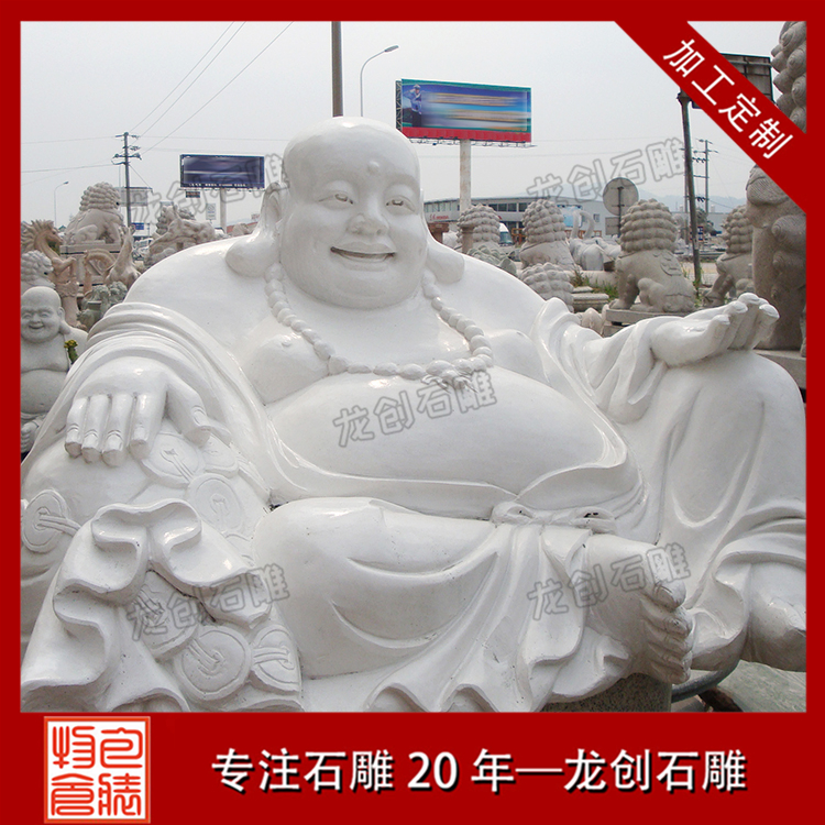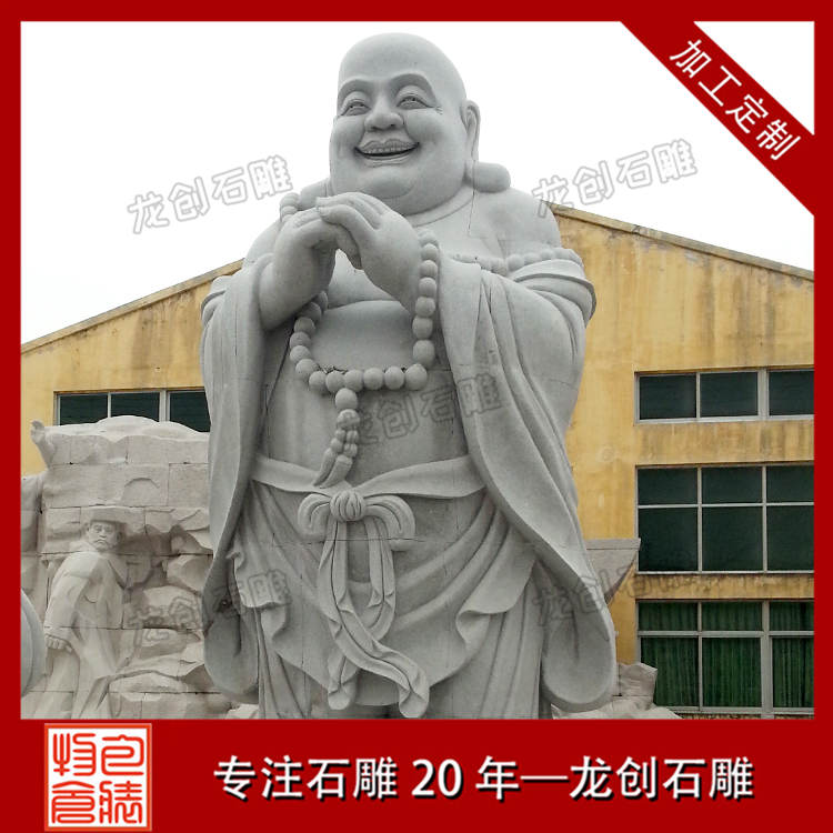 常見的彌勒佛像大都是圓頭大耳、袒胸開懷、笑容滿面的,后人則根據他獨特的笑容和開懷的大肚,在各處供有大肚彌勒佛像的寺廟里題寫出許多妙趣橫生、飽含深意的楹聯。人們對他的笑容印象很深刻,因此也被稱為石雕笑佛,惠安石雕笑佛批發,歡迎選惠安龍創石雕。