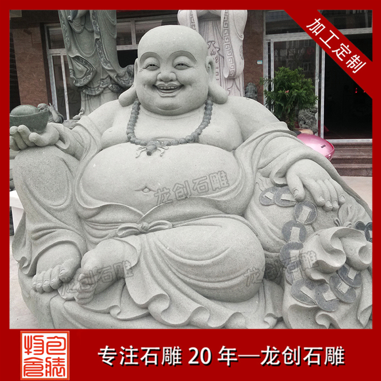 石雕笑佛在制作上平淡美好于丑拙,顯莊而嚴于詼諧,現慈悲于揶喻,彌勒佛雕塑的形象代表了寬容、和善、智慧、幽默、快樂的精神,也代表著人們對美好未來的期待,不僅僅成為了佛教中的形象大使,彌勒佛的雕塑也是形象的代表。