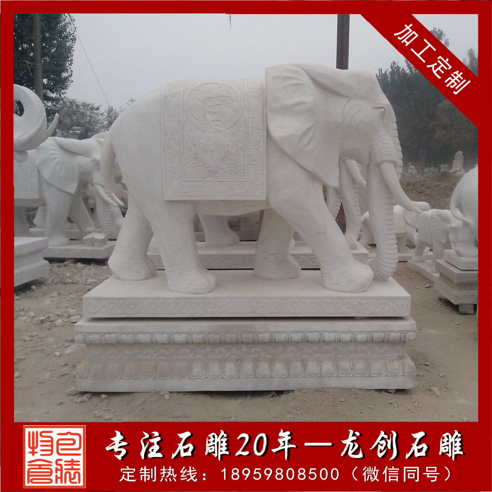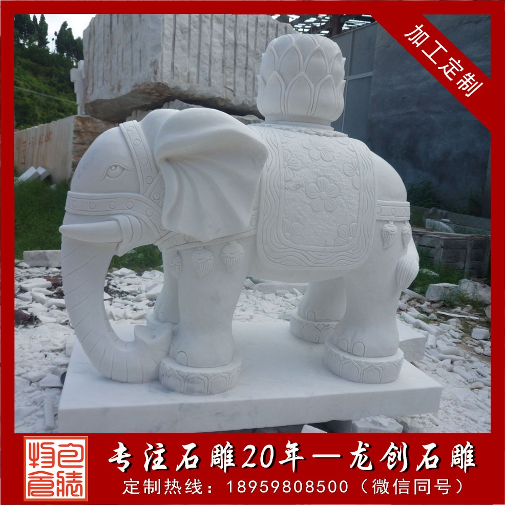 在家中擺放石雕象并不是什么時候都可以的事情,也有一個日期時間上的要求,其本身是一種風水動物,根據不同地區的風俗要求,在擺放上也都會有不同的要求。在實際擺放的時候就要先做好整體考慮,根據當地的風俗習慣等來對比,選擇到合適的吉日擺放,根據一些地域的特殊要求,擺放也都會需要挑選合適時期下圖是我們嘉祥縣長城石雕廠制作的招財石雕大象,石材芝麻白花崗巖,大象背上托的是元寶,適合擺放在公司、家庭、別墅大門口,我們還制作過寺院大象,他雕刻圖案一般是寶相紋,大象背上馱著蓮花、經書等佛教寶物。