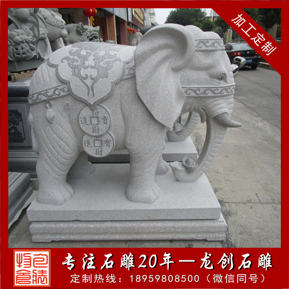 石雕大象圖片大全及擺放門口的注意事項,歡迎聯系龍創石雕業務經理陳榮杰,我們主要是做主要經營:各種大中型噴水池、花盆園林景觀石制品,寺廟古建,人物佛像雕刻,風水瑞獸等。