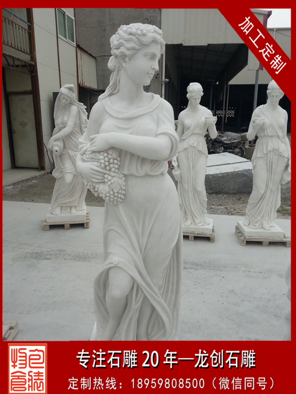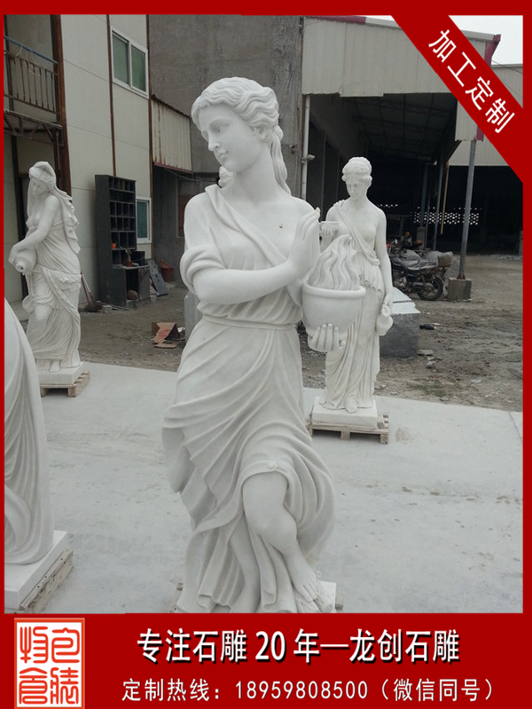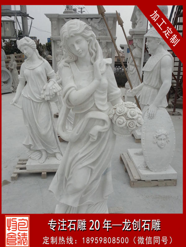 漢白玉西方人物雕塑顧名思義就是用漢白玉雕刻出的西方人物雕塑。漢白玉通體潔白,也用于雕刻佛像等,西方從古希臘時代就用白色的大理石作為人像雕刻材料。在日常生活中,我們經常能看到色調淡雅、紋理清晰、圖案美觀的大理石。人們常用大理石來裝飾墻壁、制作桌面及各種文具和工藝品。北京故宮各大殿臺基周圍的欄桿,就是用純白色大理石制作的。這種純白色的大理石叫作漢白玉。