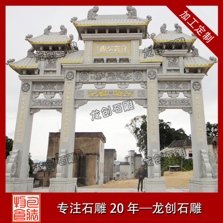 石雕牌樓的材質有很多,青石、花崗巖、漢白玉都可以制作石牌樓,材質不一樣,石牌樓價格也不一樣,其中價格最貴的是漢白玉石雕牌樓,由于漢白玉石材資源稀缺,開采量少,因此價格高,漢白玉石牌樓定制選惠安龍創石雕,雕刻工藝精湛,產品質量上乘,源頭廠家,價位合理。支持來圖來樣定制,龍創石雕專業為您服務,歡迎咨詢考察。