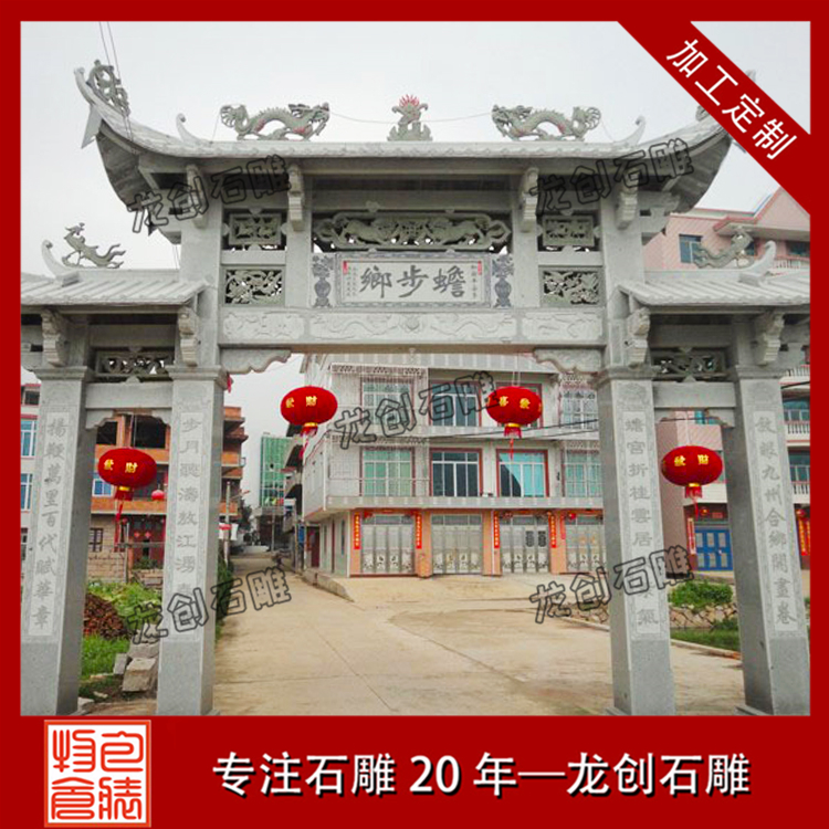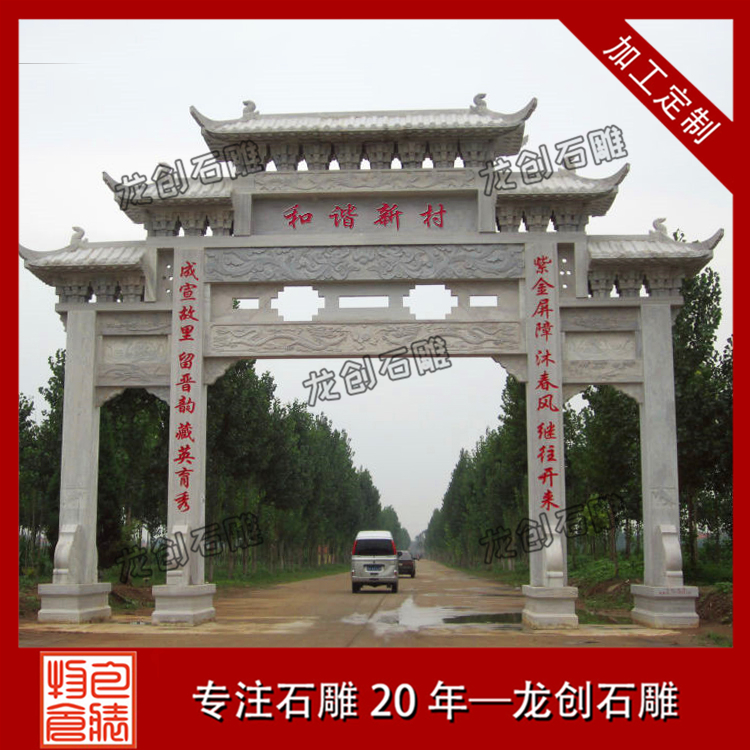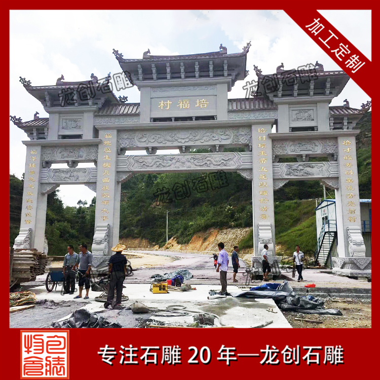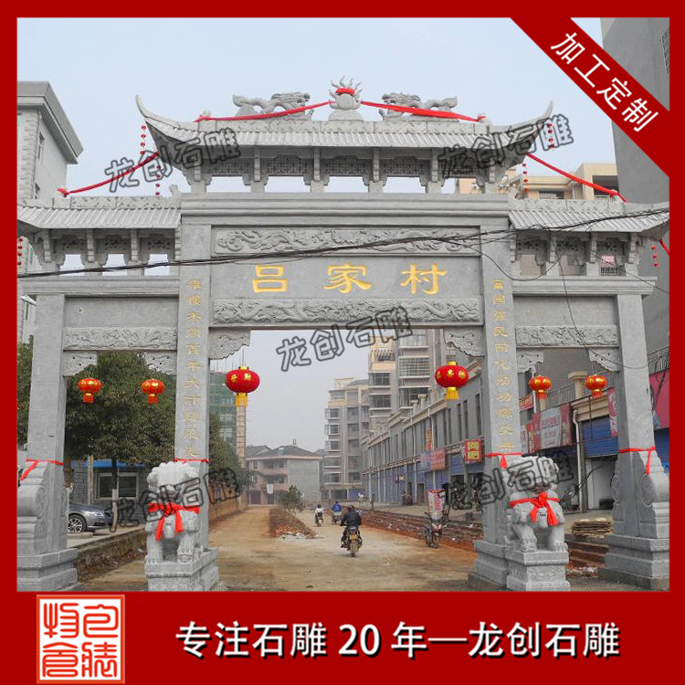 正常情況下,普通三門形式的農村石牌坊報價在15-30萬元之間,但是每個客戶要求雕刻的圖案和制作的尺寸都不一樣,所以價格會有差異,我們要根據自己村莊的地理空間大小和財力選擇定制適合自己村莊的石牌坊大門。